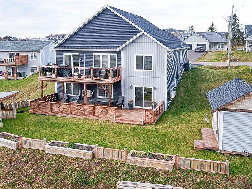 Welcome to 26 Abegweit Lane!...Experience Coastal Luxury with Oceanview in North Rustico! This exceptional 3-year-old oceanview home offers 4 bedrooms, 3 bathrooms located in the heart of North Rustico, just a short walk or bike ride to North Rustico Beach and close to all local amenities and restaurants. Featuring an open-concept floor plan with quartz countertops and a sleek backsplash, this home is perfect for entertaining family and guests. The upper level offers a luxurious primary suite with ensuite bath and walk-in closet alongside a second bedroom, while the walkout lower level includes two additional bedrooms and a dedicated office space ideal for remote work or study. Stylish counter upgrades enhance each bathroom, and outdoor living is elevated with two spacious decks, including a 40-foot lower deck that's overlooking a meticulously landscaped backyard complete with gazebo, fencing, and a wired shed with lighting and shelving. The property has been regraded to create more usable space for gardening and recreation, while practical upgrades such as a heat pump, generator plug with sub-panel, and electrical b-line for a future car charger provide peace of mind. With breathtaking ocean views and modern updates throughout, this move-in-ready home combines comfort, convenience, and coastal charm in one of PEI’s most desirable communities. All measurements are approximate and should be verified by the buyer(s), if deemed necessary.